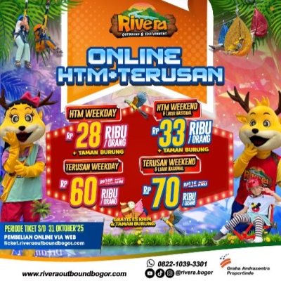Paket ini berisikan Gratis Tiket Masuk Rivera & Pilihan Wahana Rivera Outbound Bogor