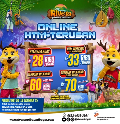 - Paket ini berisikan Gratis Tiket Masuk Rivera & Pilihan Wahana Rivera Outbound Bogor.