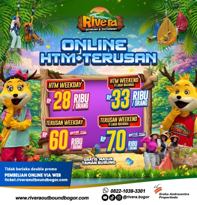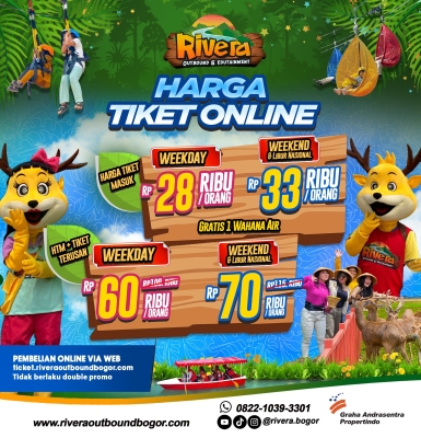 Paket ini berisikan Gratis Tiket Masuk Rivera & Pilihan Wahana Rivera Outbound Bogor